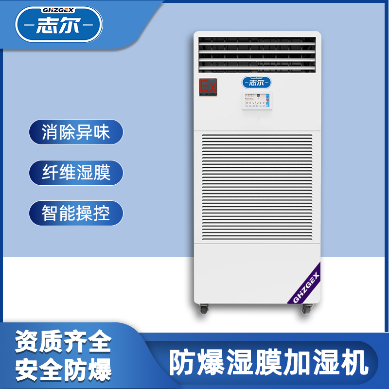 防爆湿膜加湿机适用于石油、化学化工、科研室、航空航天、实验室、储藏、军事等部门具有ⅡC级,温度组别为T4的易爆性气体混合物的l区(或2区)内部危险性场所,AF系列工业级集成防爆加湿器,是采用集成防爆技术,按工业环境使用要求制造的ⅡC级防爆加湿系统。防爆加湿器电子温控大都采用热敏电阻式温度控制器(温度传感器),因为它的温感探头随温度升高电阻变小,随温度下降电阻变大。利用其这一特性,可以使缺水开机与停机,从而实现电路控制。